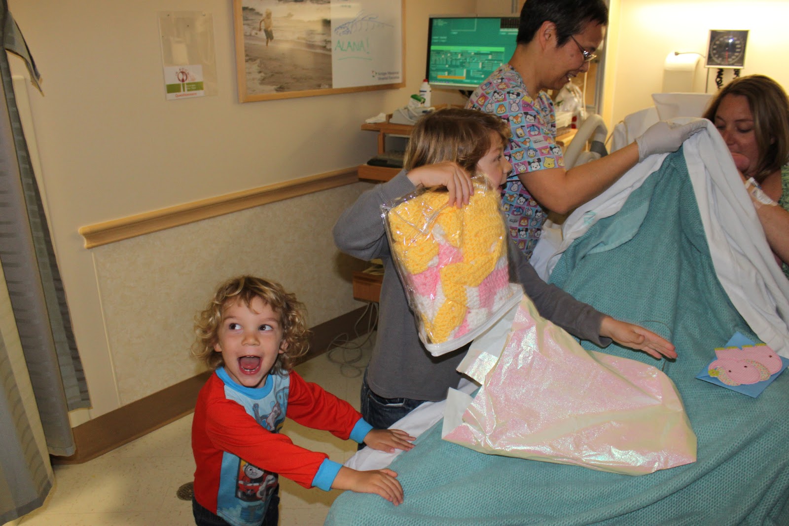 The environment in the room stayed calm. After breastfeeding, the rest of the family began to trickle in and Ramiko then did all of her cleaning and testing she had to do on Alana. Everyone got a chance to hold her and Dane and Ryan were in awe the whole time. It was so great to see Dane asking Ramiko a million questions while she was going through all of her procedures with Alana. He's so curious! Ryan was a little jealous I think, but he was so excited as well. It was a time I'll never forget.
